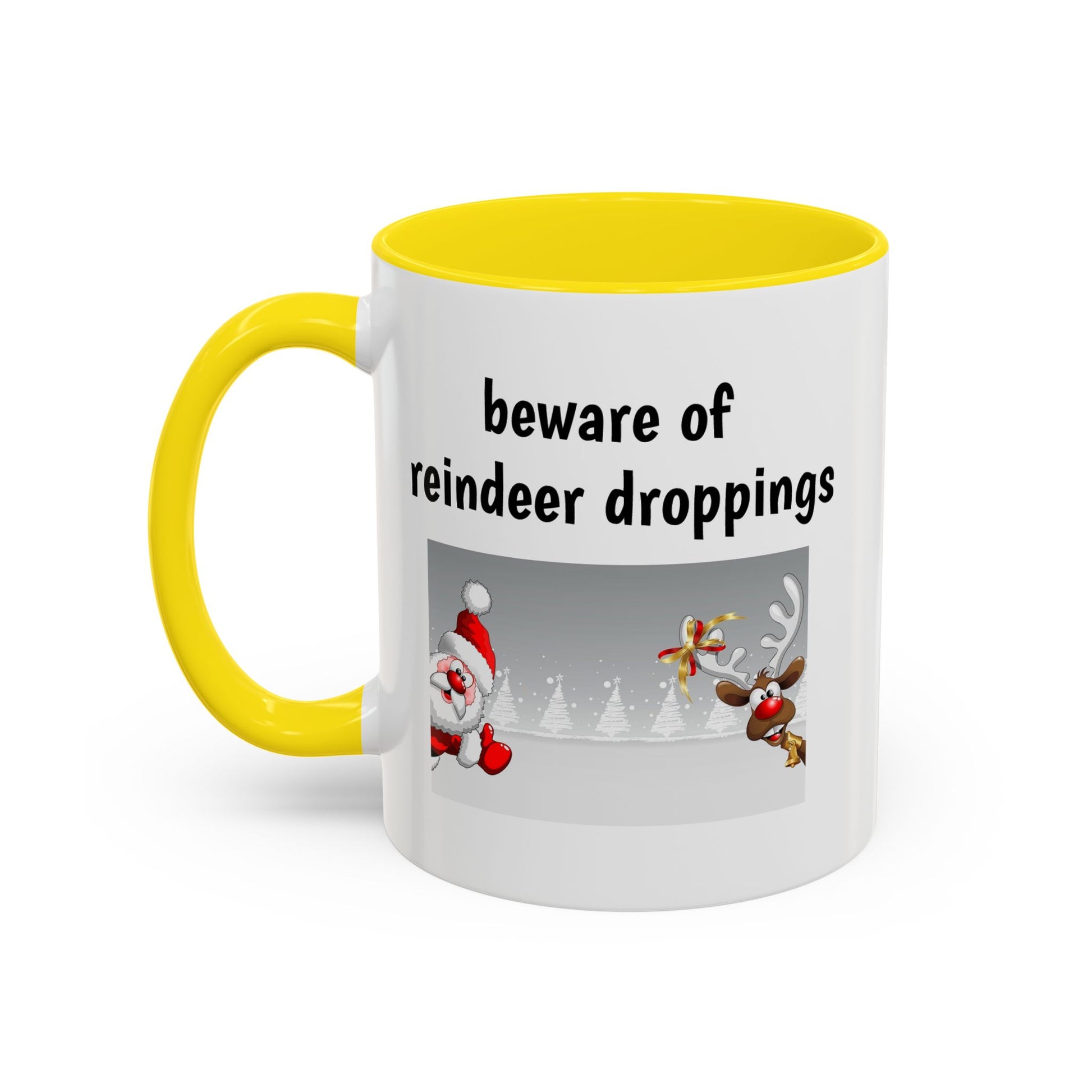 "Pasop vir rendiermis". Perfek om 'n tikkie humor by jou vakansie te voeg! Ontmoet jou volgende gunsteling oggendmaat, die keramiekbeker met aksent. Hierdie beker bied die perfekte mengsel van styl en funksionaliteit om jou koffie-, tee- of warm sjokolade-ritueel te verhef. Beskikbaar in 'n 11oz-grootte (0.33 l). Gemaak met wit keramiek in 'n slanke glansafwerking met opvallende kontras, is hierdie beker 'n plesier om uit te drink en na te kyk. Die ergonomiese C-vormige handvatsel bied 'n gemaklike greep, terwyl die loodvrye en BPA-vrye konstruksie gemoedsrus met elke slukkie bied. Gratis wêreldwye versending.