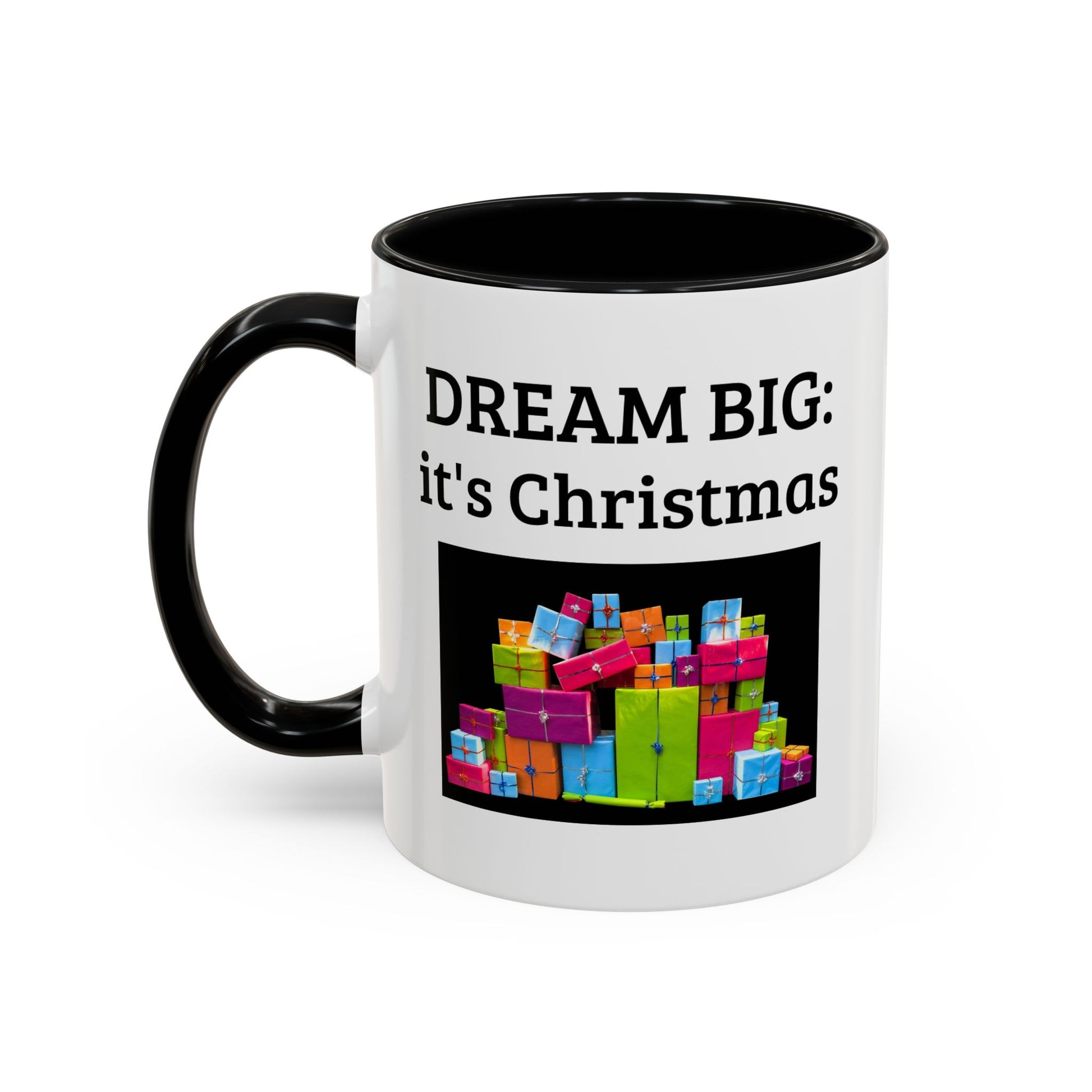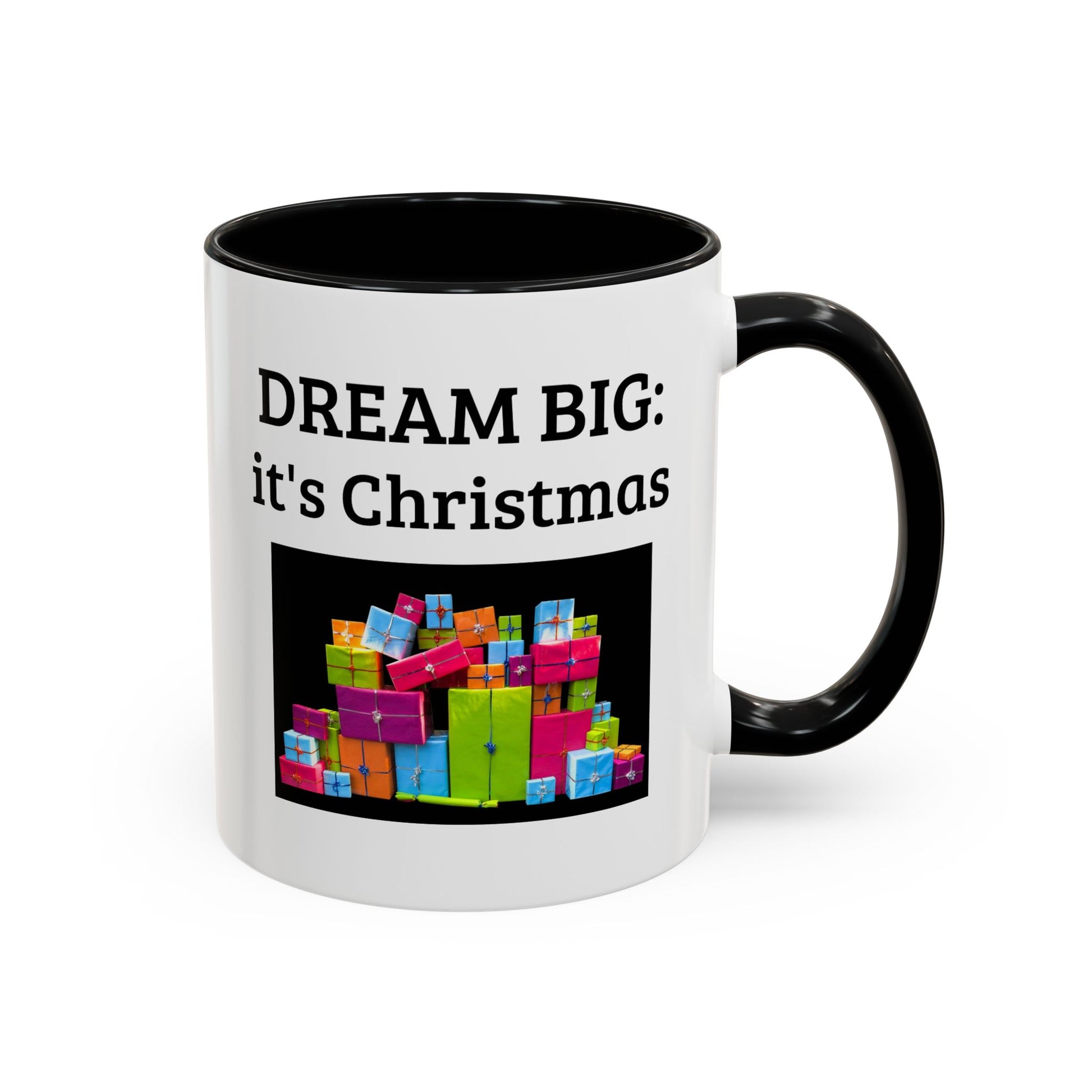 "Droom Groot - Dis Kersfees!". 'n Inspirerende vakansieboodskap vir almal. Ontmoet jou volgende gunsteling oggendmaat, die keramiekbeker met aksent. Hierdie beker bied die perfekte mengsel van styl en funksionaliteit om jou koffie-, tee- of warm sjokolade-ritueel te verhef. Beskikbaar in 'n 11oz-grootte (0.33 l). Gemaak met wit keramiek in 'n slanke glansafwerking met opvallende kontras, is hierdie beker 'n plesier om uit te drink en na te kyk. Die ergonomiese C-vormige handvatsel bied 'n gemaklike greep, terwyl die loodvrye en BPA-vrye konstruksie gemoedsrus met elke slukkie bied. Gratis wêreldwye versending.