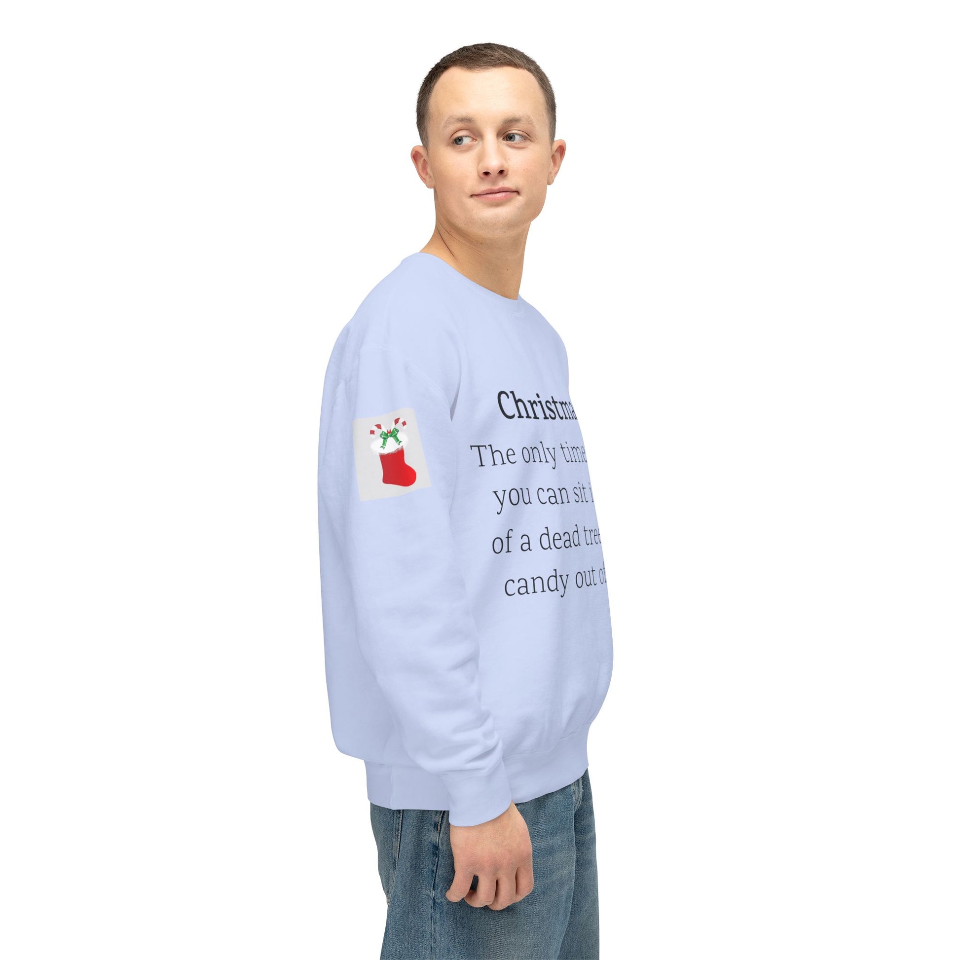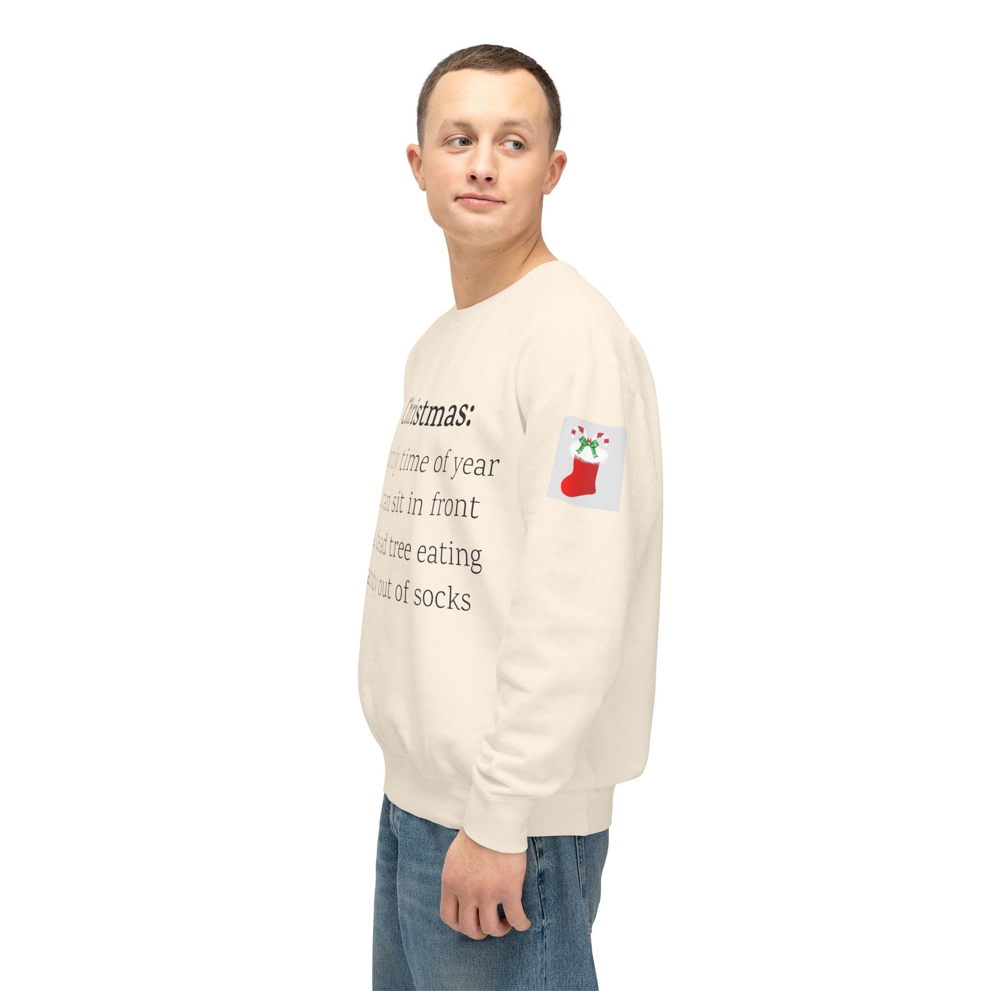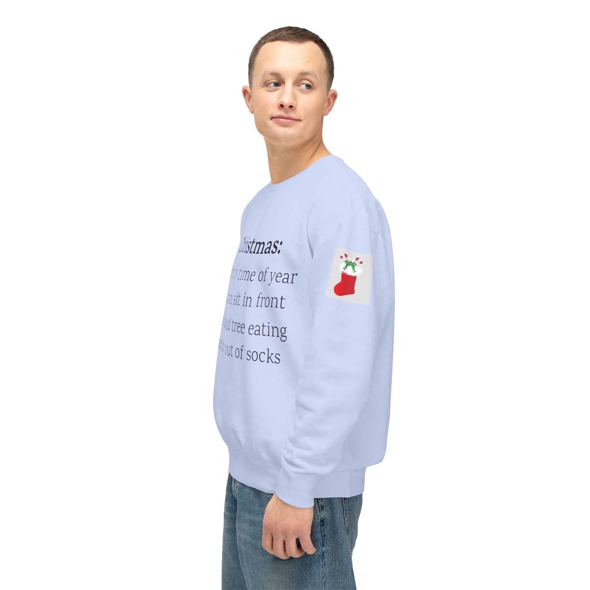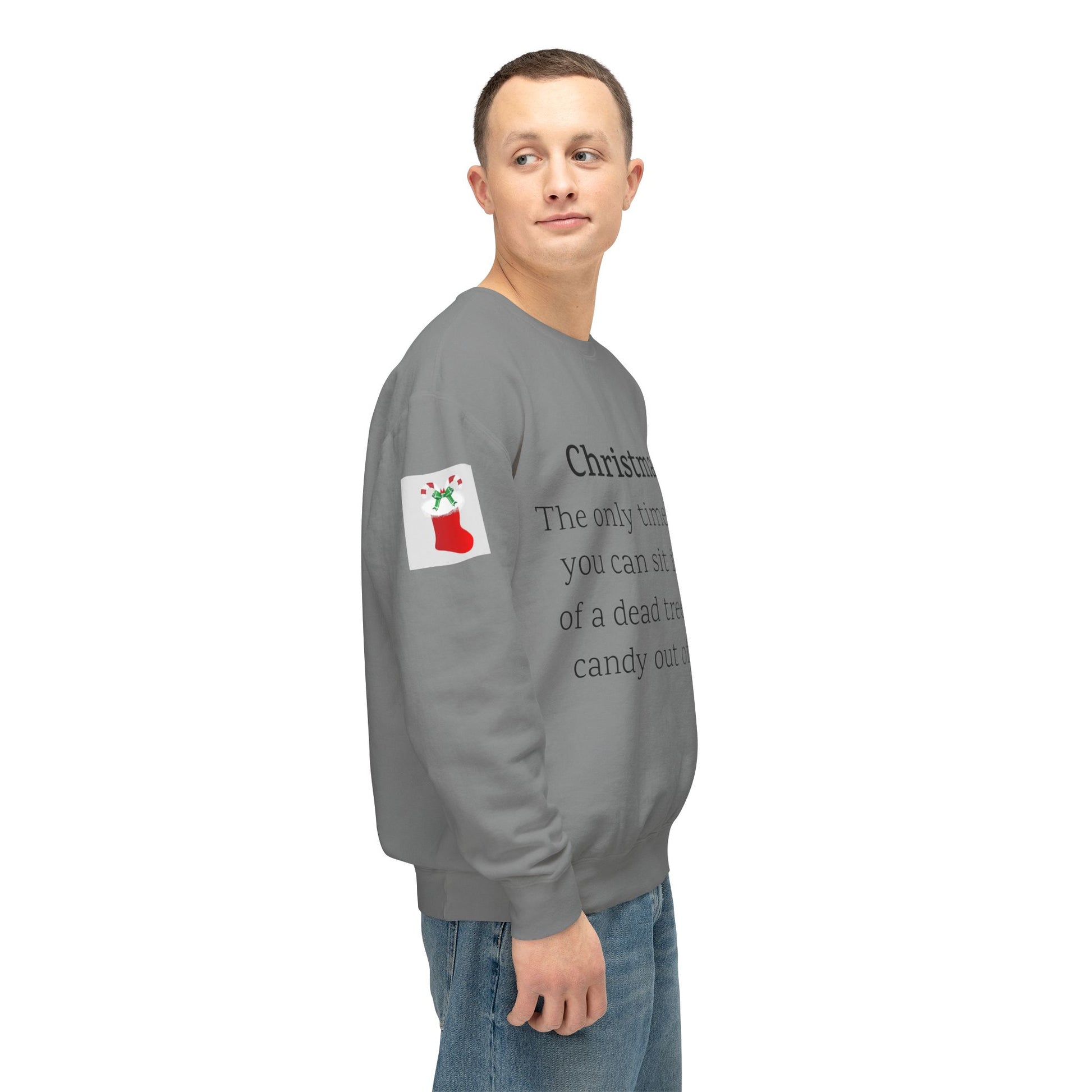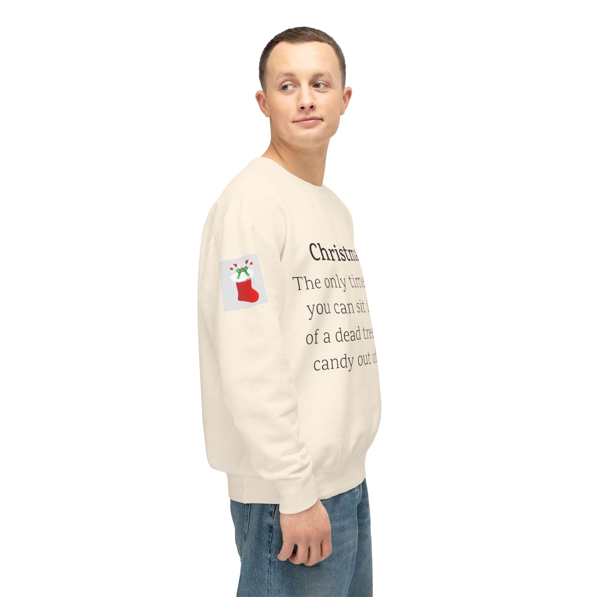 Weihnachten: Die einzige Zeit im Jahr, in der man vor einem toten Baum sitzen und Süßigkeiten aus Socken essen kann. Ein humorvoller Spruch für Ihre Weihnachtsgarderobe. Dieser lässige Pullover mit Rundhalsausschnitt vereint herausragende Qualität mit fantastischem Stil. Hergestellt aus weicher, ringgesponnener Baumwolle mit 100 % Baumwollgarn, ist er in Sachen Weichheit unübertroffen. Alle Pullover haben eine nach vorne gerollte Schulterpartie und sind mit OEKO-TEX®-zertifizierten, umweltschonenden Farben bedruckt. Comfort Colors ist außerdem stolzes Mitglied des US Cotton Trust Protocol und steht somit für nachhaltigen Baumwollanbau, der gut für die Umwelt ist.