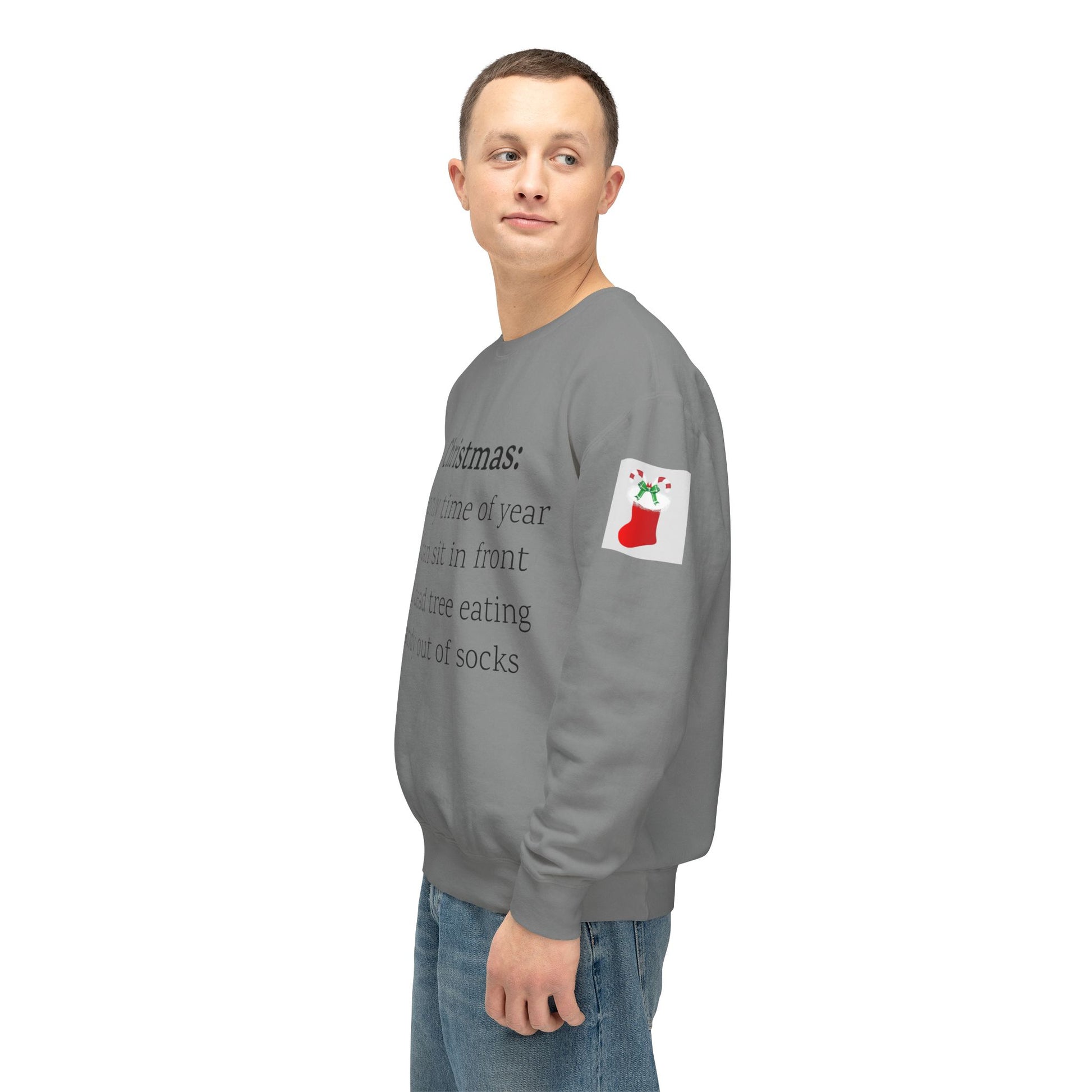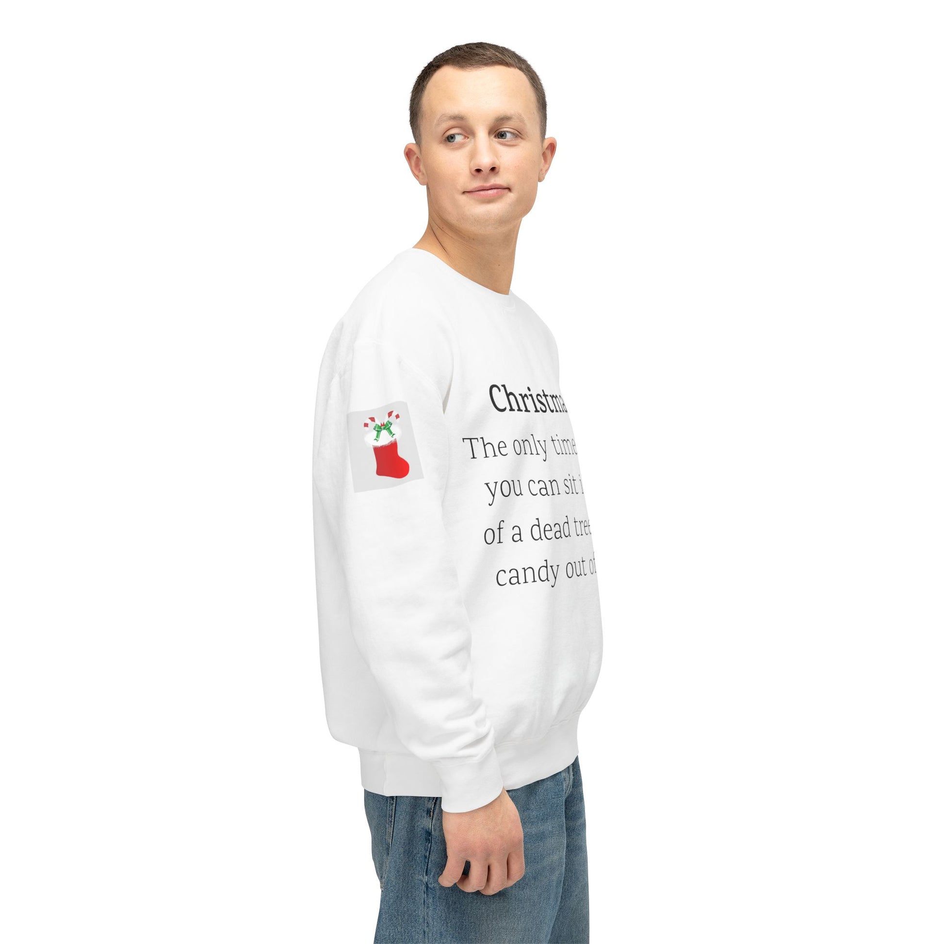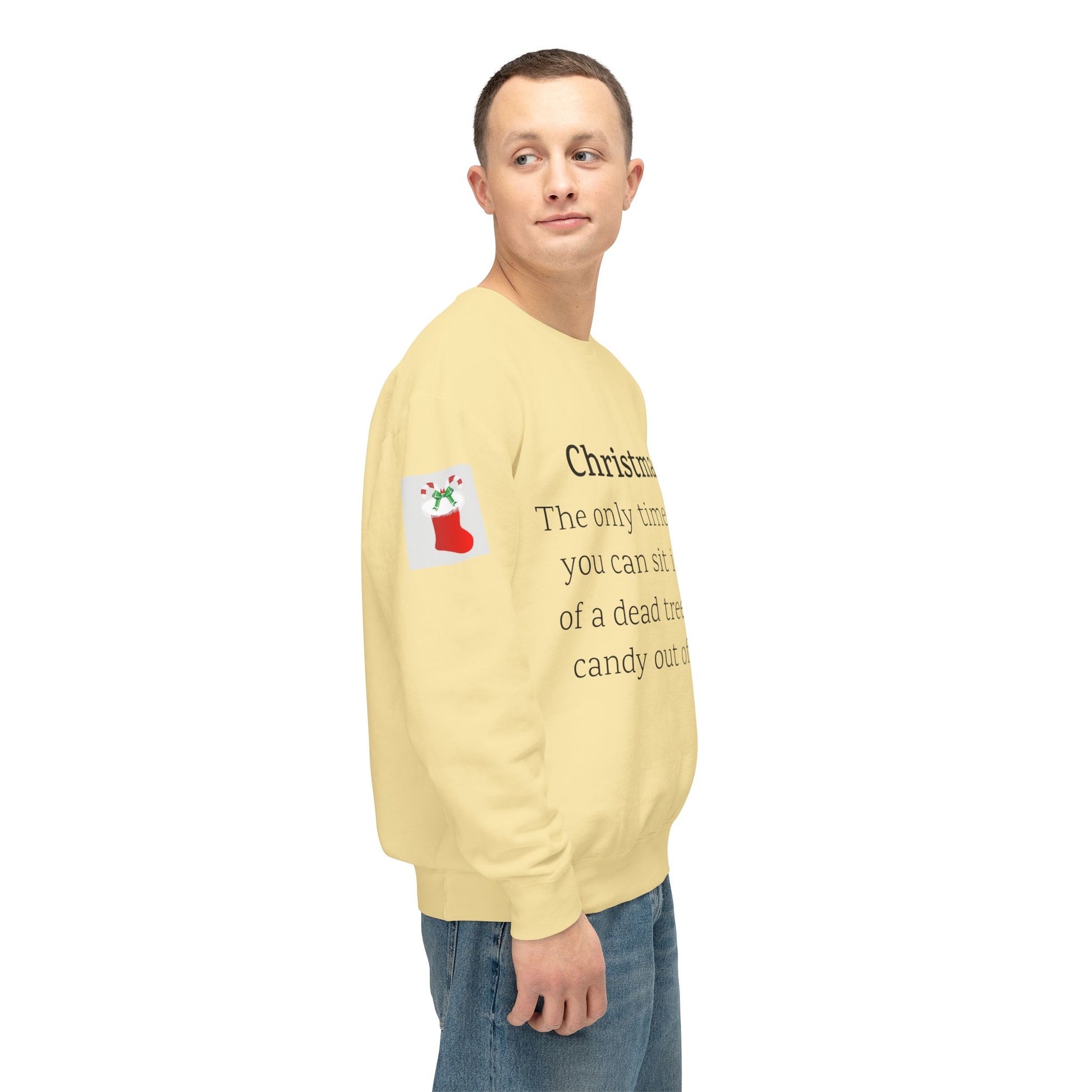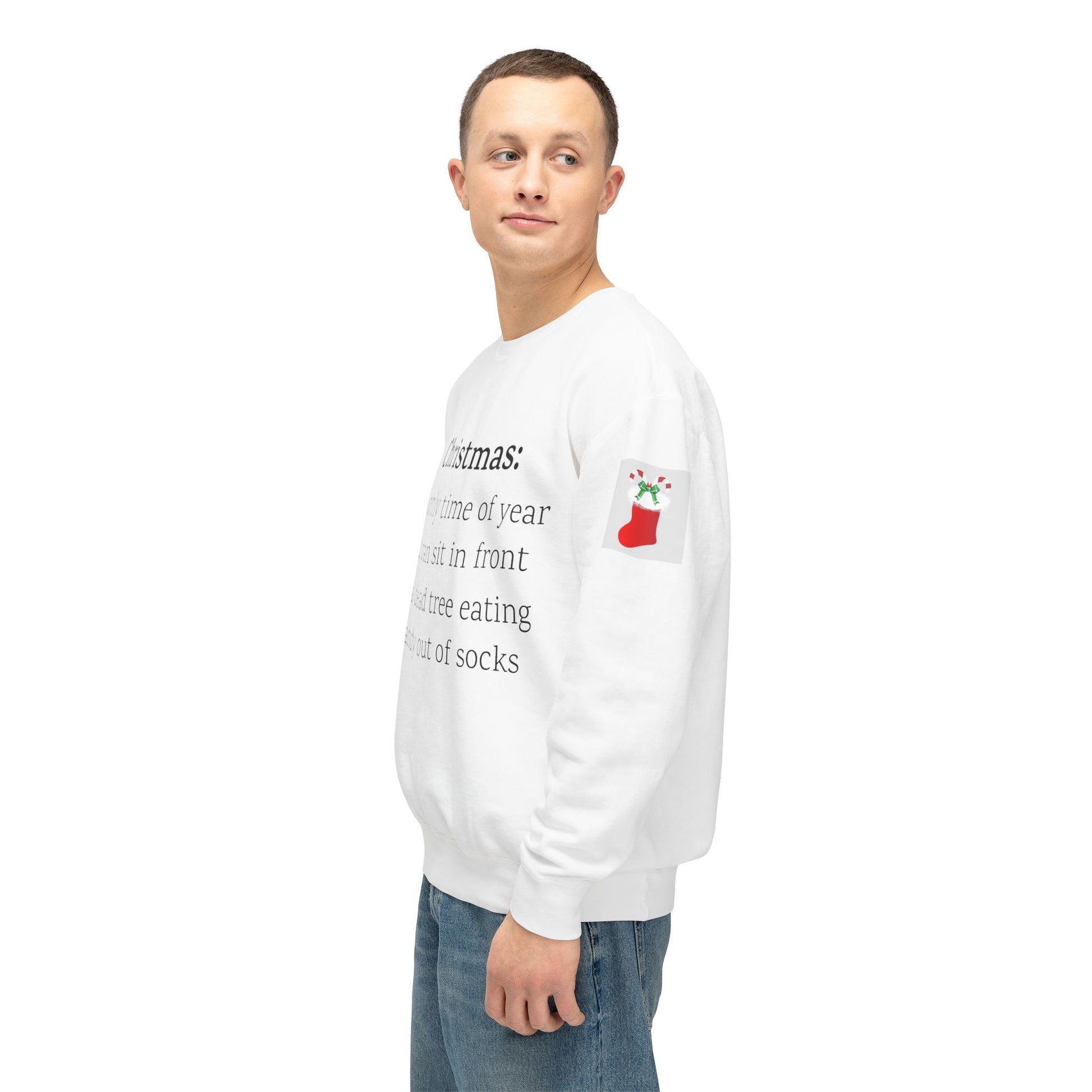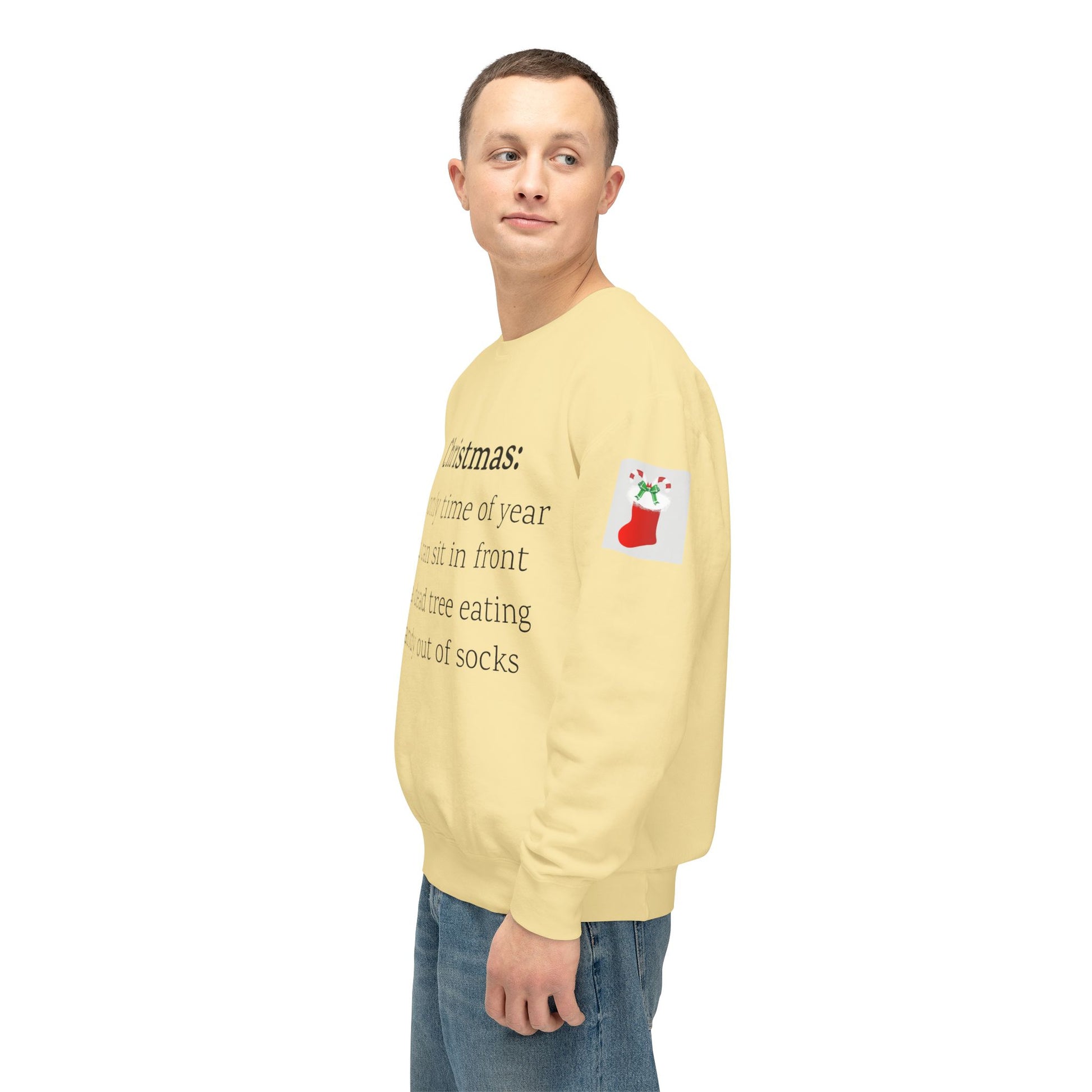 Weihnachten: Die einzige Zeit im Jahr, in der man vor einem toten Baum sitzen und Süßigkeiten aus Socken essen kann. Ein humorvoller Spruch für Ihre Weihnachtsgarderobe. Dieser lässige Pullover mit Rundhalsausschnitt vereint herausragende Qualität mit fantastischem Stil. Hergestellt aus weicher, ringgesponnener Baumwolle mit 100 % Baumwollgarn, ist er in Sachen Weichheit unübertroffen. Alle Pullover haben eine nach vorne gerollte Schulterpartie und sind mit OEKO-TEX®-zertifizierten, umweltschonenden Farben bedruckt. Comfort Colors ist außerdem stolzes Mitglied des US Cotton Trust Protocol und steht somit für nachhaltigen Baumwollanbau, der gut für die Umwelt ist.