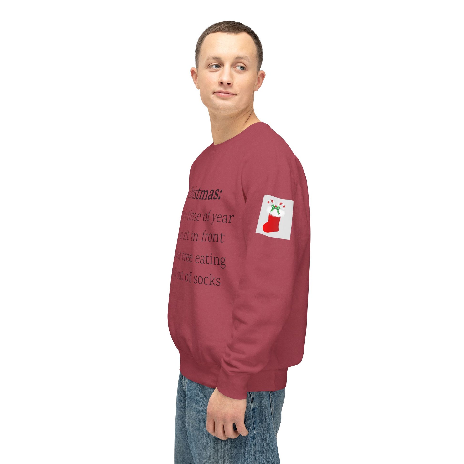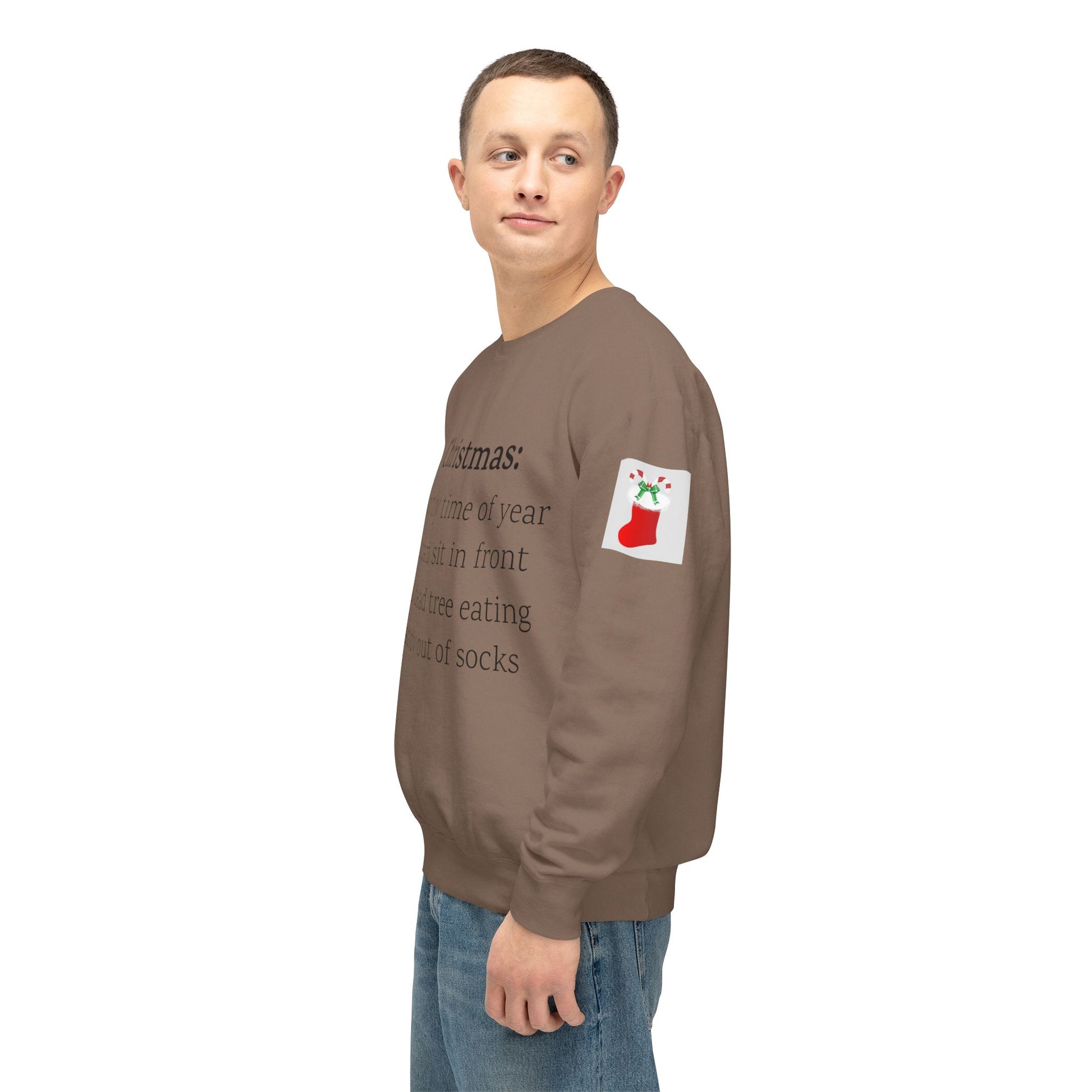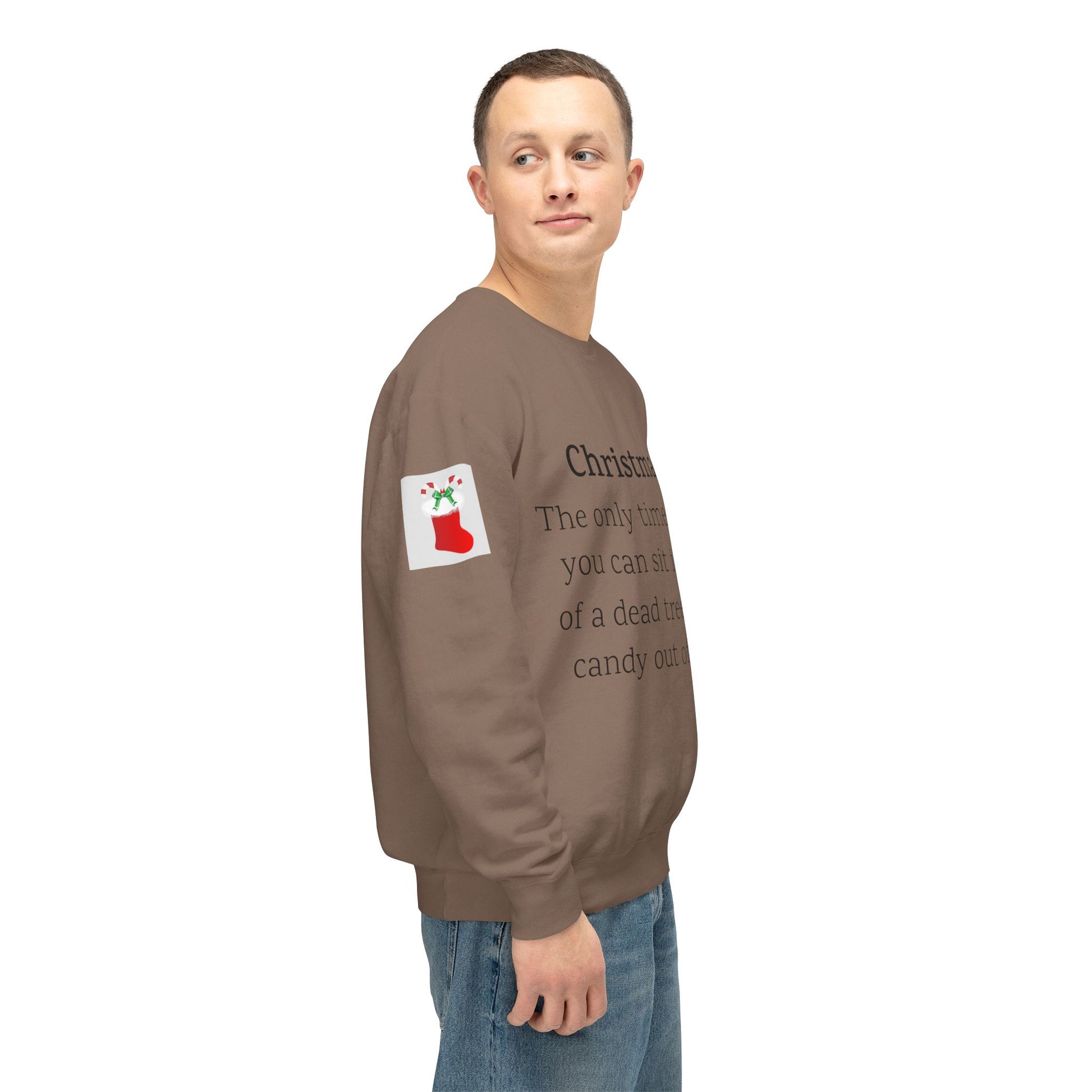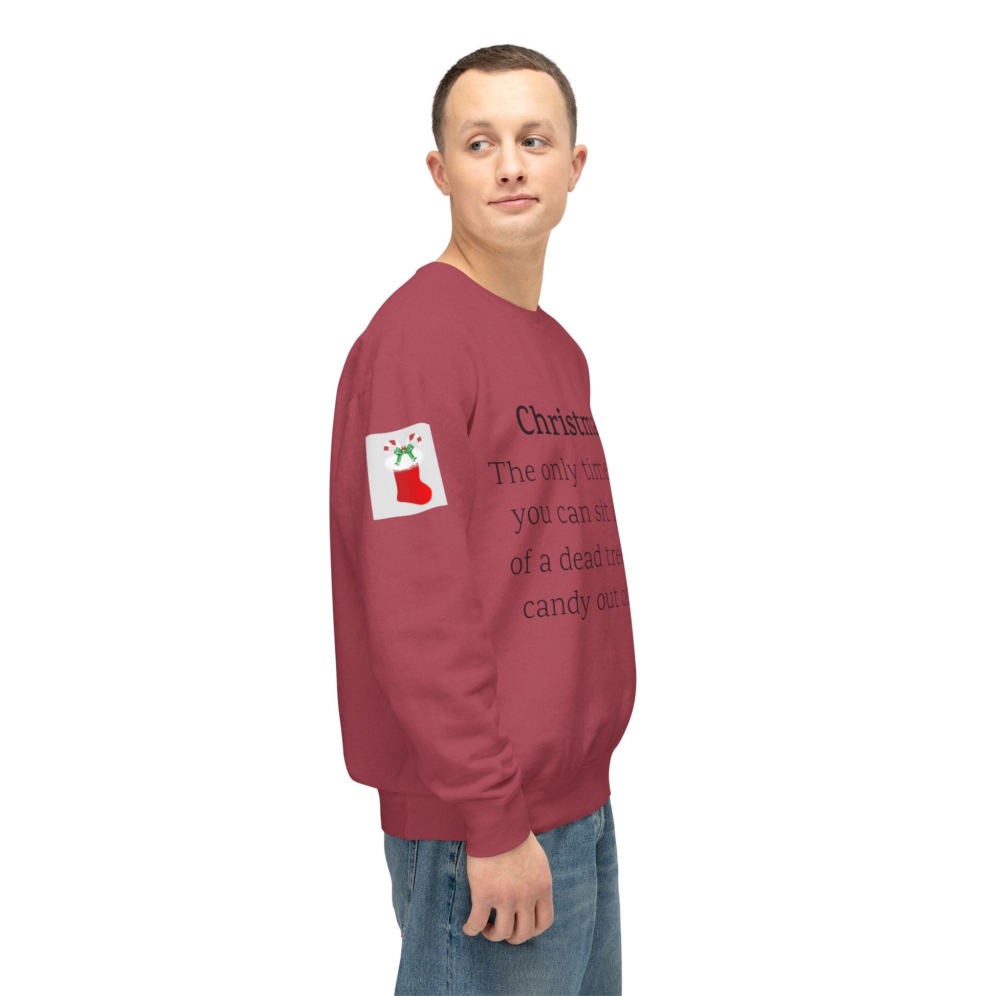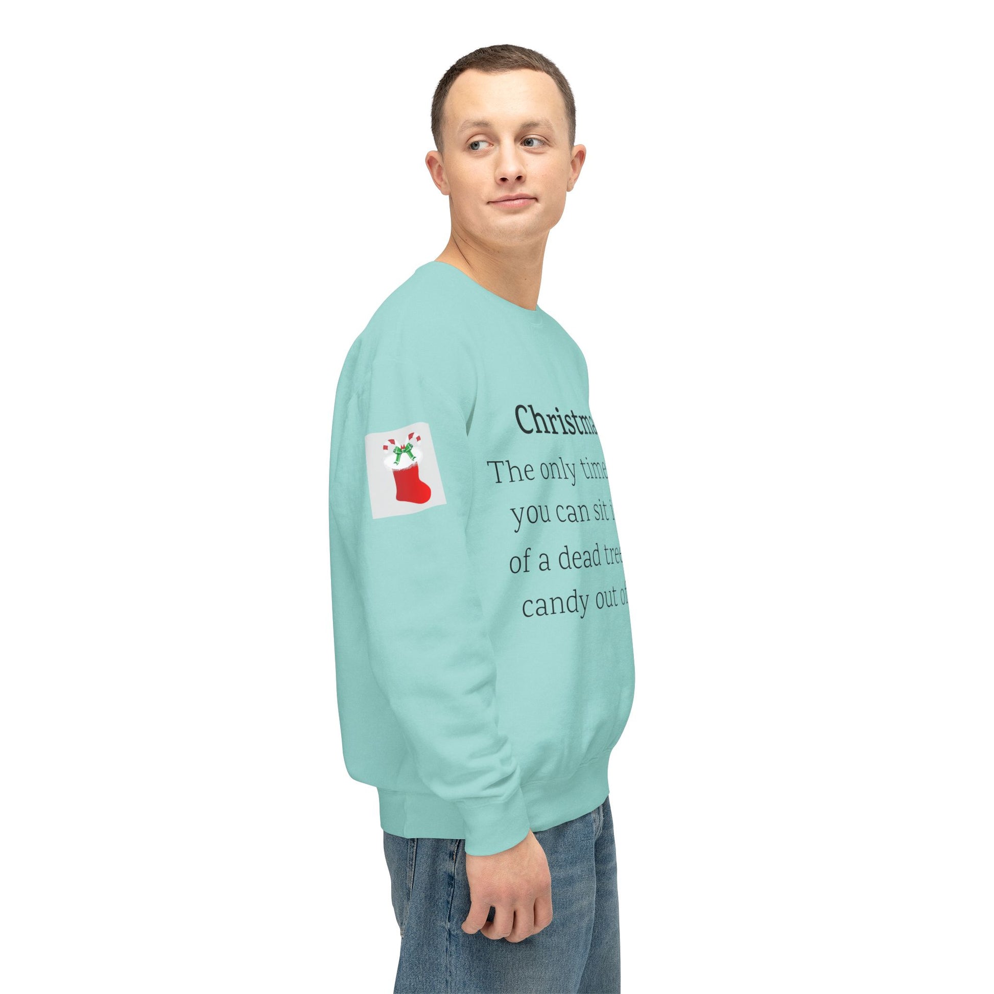 Weihnachten: Die einzige Zeit im Jahr, in der man vor einem toten Baum sitzen und Süßigkeiten aus Socken essen kann. Ein humorvoller Spruch für Ihre Weihnachtsgarderobe. Dieser lässige Pullover mit Rundhalsausschnitt vereint herausragende Qualität mit fantastischem Stil. Hergestellt aus weicher, ringgesponnener Baumwolle mit 100 % Baumwollgarn, ist er in Sachen Weichheit unübertroffen. Alle Pullover haben eine nach vorne gerollte Schulterpartie und sind mit OEKO-TEX®-zertifizierten, umweltschonenden Farben bedruckt. Comfort Colors ist außerdem stolzes Mitglied des US Cotton Trust Protocol und steht somit für nachhaltigen Baumwollanbau, der gut für die Umwelt ist.