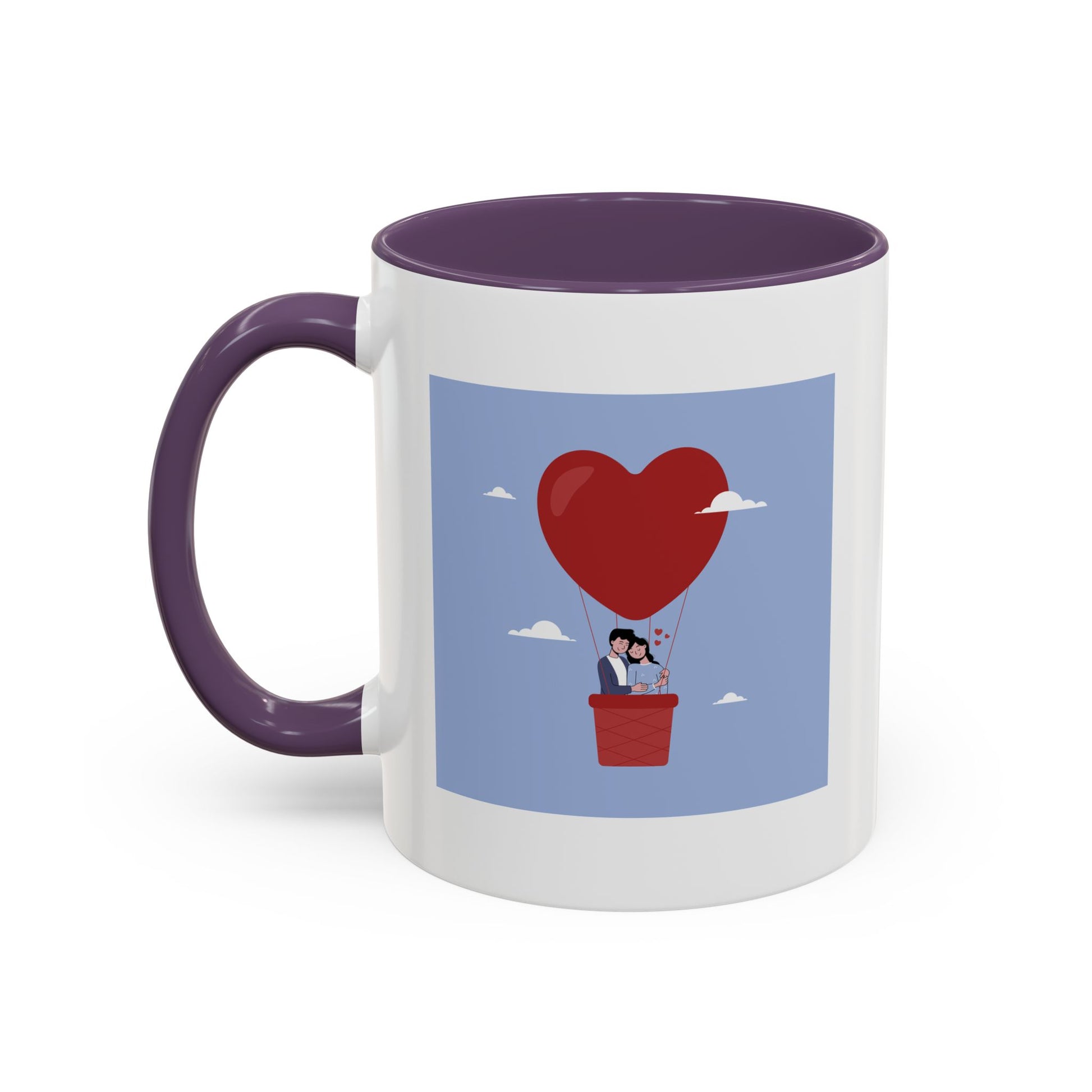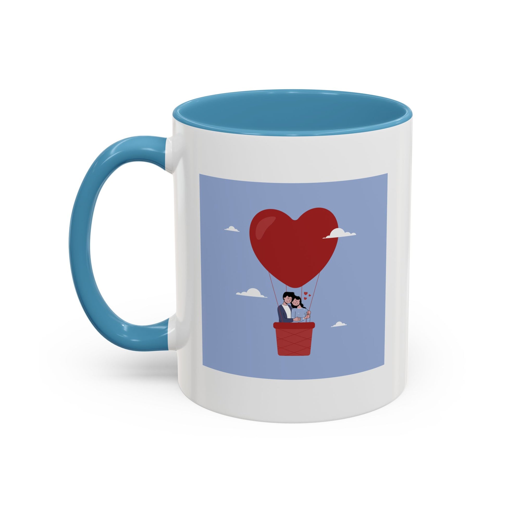 Show your love with this hot air balloon couple on a coffee mug. It catches your eye with a quietly romantic aesthetic. Great for Valentine's Day, Christmas, Birthdays or just for everyday use. Meet your next favorite morning companion, the accented ceramic mug. This mug brings the perfect blend of style and functionality to elevate your coffee, tea or hot chocolate ritual. Available in an 11oz size (0.33 l). Made with white ceramic in a sleek glossy finish with eye-catching contrast, this mug is a joy to drink from and to look at. The ergonomic C-shaped handle provides a comfortable grip, while the lead-free and BPA-free construction allow for peace of mind with every sip. Free worldwide shipping.